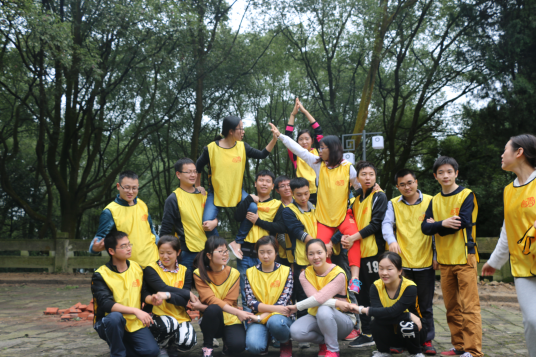 參加人員被分為紅隊和黃隊兩支團隊,通過集體討論,確定了各自的隊名、隊長和口號。活動中,大家相互鼓勵、相互幫助、團結一心、共同完成了破冰、群龍取水、穿越電網、信任背摔、 挑戰(zhàn)越障等一系列拓展項目,體現了濃厚的集體歸屬感和團隊意識。每輪項目結束后,大家都會在一起相互商討、爭相發(fā)言,分享親身體驗的過程和成功的喜悅,尤其是學會了如何去溝通,如何去克服心理障礙,如何突破自我去釋放正能量戰(zhàn)勝困難。