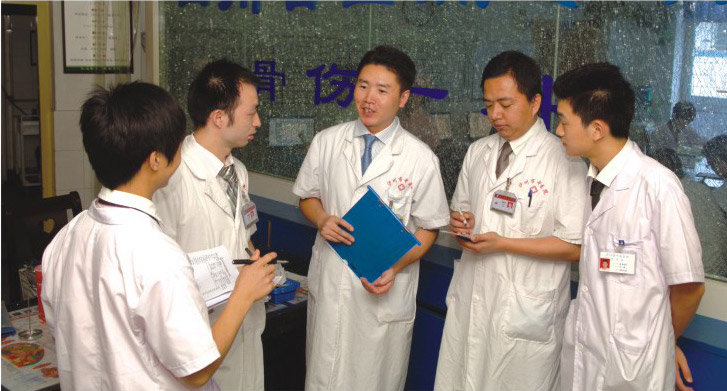 骨傷一科主任汪永泉(左一))正在為患者作檢查