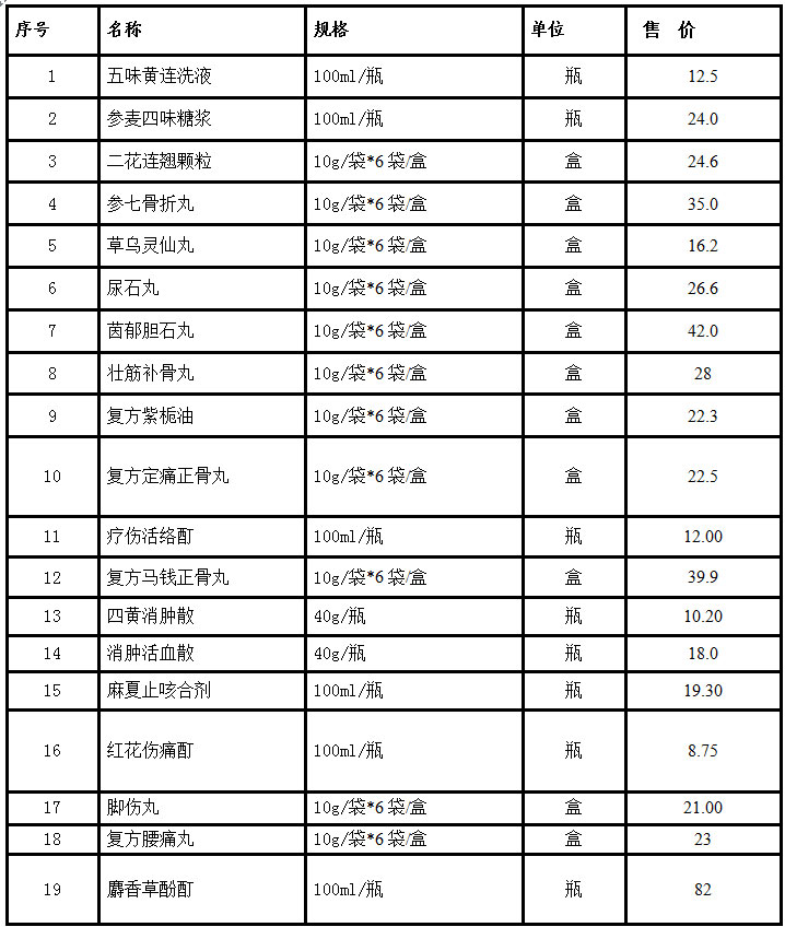 瀘州市中醫醫院制劑藥品價格公示