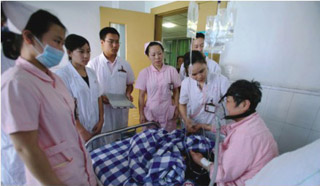 醫院副院長、肺病專家吳智惠(中)正在進行“師帶徒”教學查房